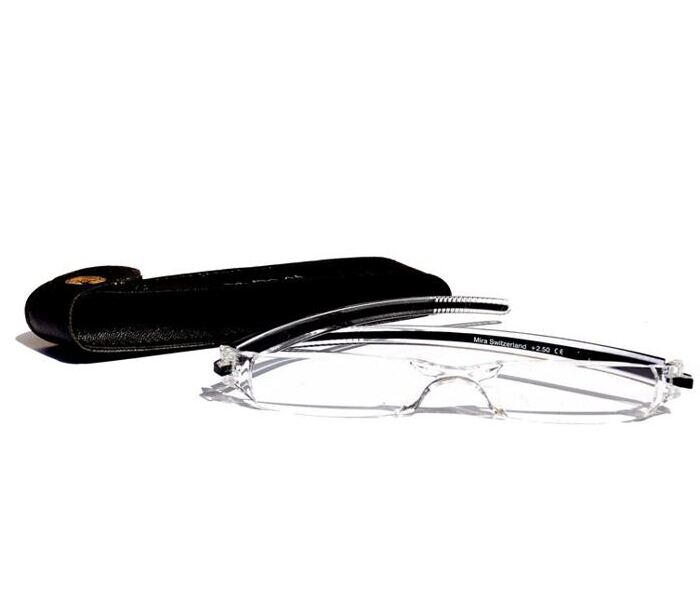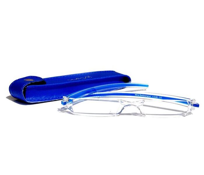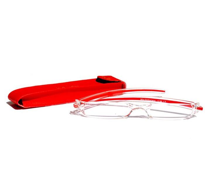 Fashionable one-piece acrylic reading glasses in fresh colors with matching case.
