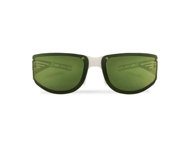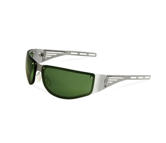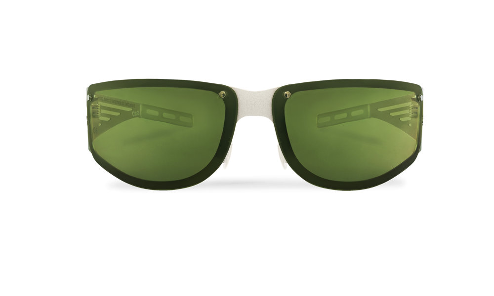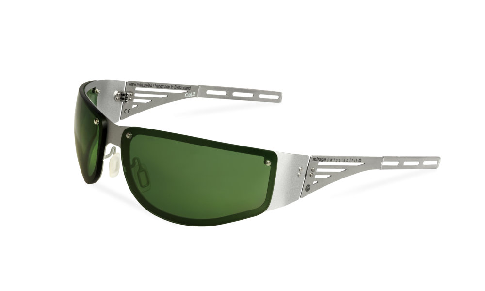 - Matt silver frame and temples made from ultra-thin, rustproof spring steel for absolutely pressure-free wear under a helmet
