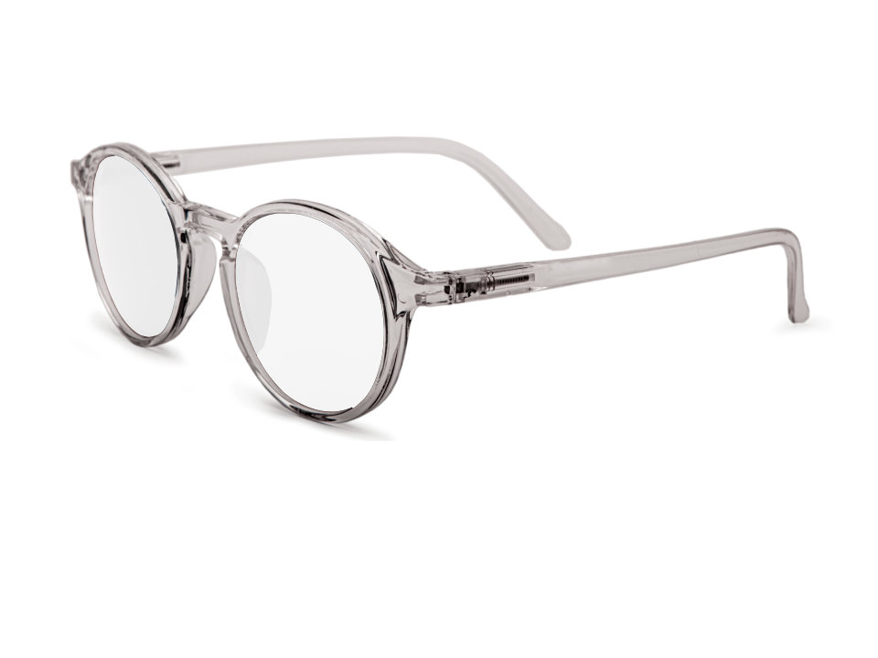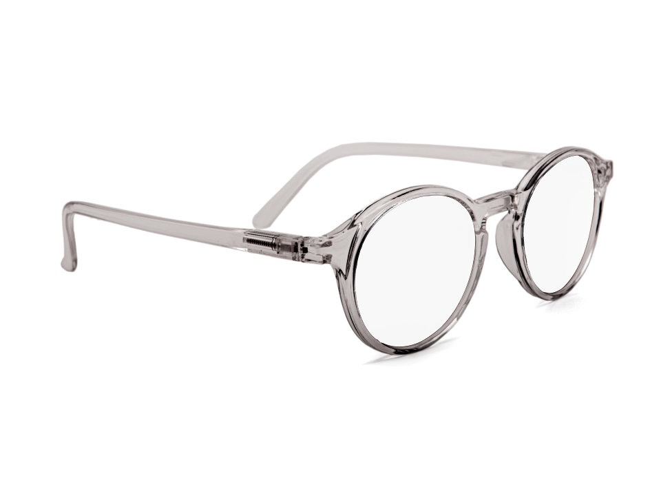 Crystal reading glasses with round, transparent frames. Elegant, lightweight, and shiny—a real highlight for any look