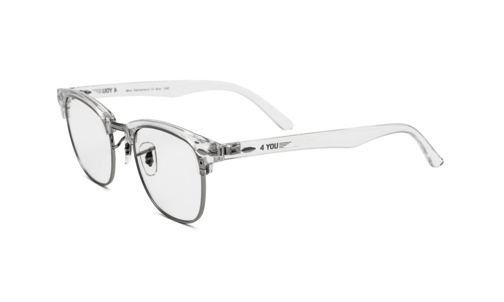 - Aspherical plastic lenses with blue light filter for "distortion-free" vision