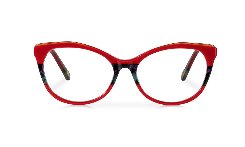 - Classic Cateye reading glasses in beautiful red with subtle additional color accents.