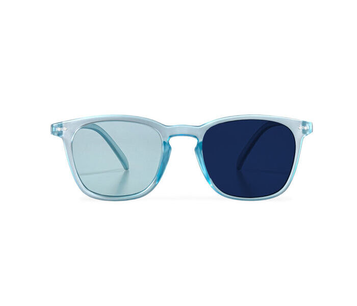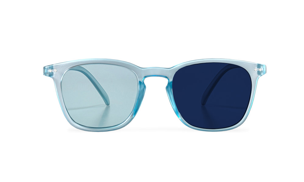- With self-tinting lenses, the glasses automatically adapt to the light conditions – ideal for switching between indoor and outdoor areas. The lenses darken to 85% in a rich blue color, 100% UV400